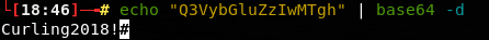 checking /secret.txt reveals a base64 string which i decoded to reveal Curling2018!