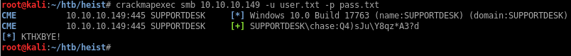 [+] IP: 10.10.10.149:445 Name: heist.htb